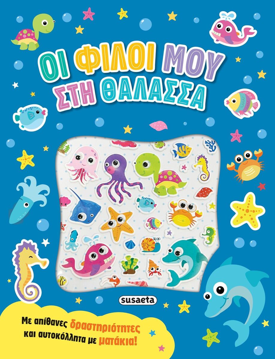 Ένα απίθανο βιβλίο γεμάτο με τα χρώματα της θάλασσας και του βυθού! Χρωμάτισε, μέτρησε, αντιστοίχισε, βρες τις διαφορές, σχεδίασε και παίξε ένα σωρό θαλασσινά παιχνίδια παρέα με ζωάκια που ζουν μέσα και έξω από το νερό! Τα αυτοκόλλητα που συνοδεύουν το βιβλίο έχουν ματάκια που κουνιούνται και μπορείς να τα κολλήσεις όπου σου αρέσει!