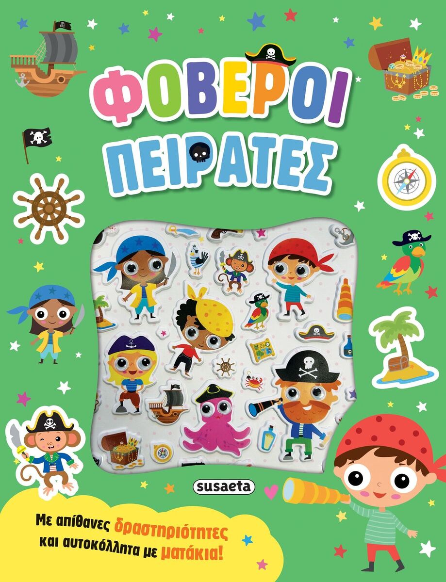 Ένα απίθανο βιβλίο γεμάτο πειρατές και πειρατίνες, χαμένους θησαυρούς, ξύλινα σκαριά και ερημικά νησιά! Χρωμάτισε, μέτρησε, αντιστοίχισε, βρες τις διαφορές, σχεδίασε και παίξε ένα σωρό παιχνίδια παρέα με τους πιο ατρόμητους θαλασσόλυκους! Τα αυτοκόλλητα που συνοδεύουν το βιβλίο έχουν ματάκια που κουνιούνται και μπορείς να τα κολλήσεις όπου σου αρέσει!