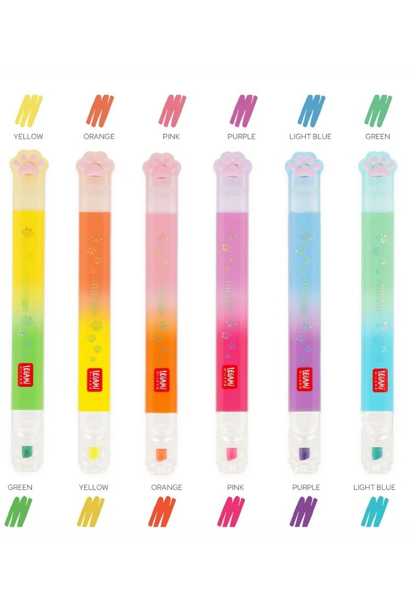 Το σετ 6 μαρκαδόρων μαρκαδόρων διπλής παστέλ και νέον νιάου από τη Legami θα πηδήξει σαν γάτα για να επισημάνει τις πιο σημαντικές πληροφορίες και να γουργουρίσει σε κάθε σελίδα των σημειώσεών σας. Και ξεχάστε εννέα ζωές - με τις διπλές μύτες, έχετε 12 παστέλ και νέον χρώματα.