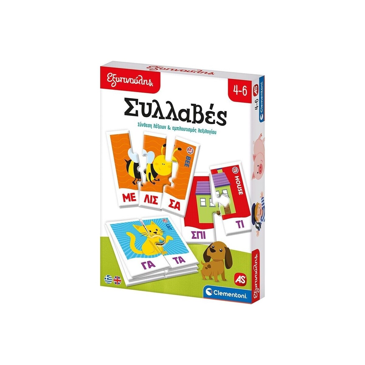 Ο συλλαβισμός γίνεται διασκέδαση με τις συλλαβές! Αποτελείται από αυτοδιορθωτικά κομμάτια παζλ και βοηθάει τα παιδιά να μάθουν τα ονόματα αντικειμένων και ζώων αρχίζοντας σιγά-σιγά να συλλαβίζουν. Πρώτα, μέσα από απλές λέξεις, το παιδί αρχίζει να κατανοεί τους μηχανισμούς που καθορίζουν το πώς χωρίζονται οι λέξεις σε συλλαβές και στη συνέχεια, αφού αποκτήσει μια εξοικείωση, προχωράει σε μεγαλύτερες λέξεις που αποτελούνται απο 3 συλλαβές.